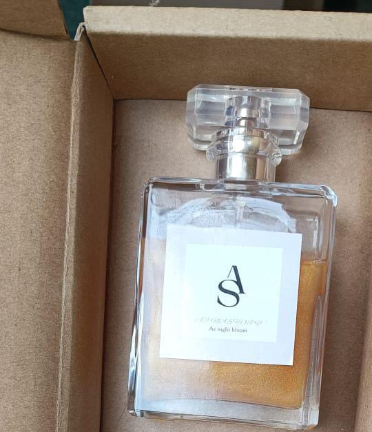 As Night Bloom(50ml): Bold & sensual with notes of pink pepper, bergamot, rose & patchouli.